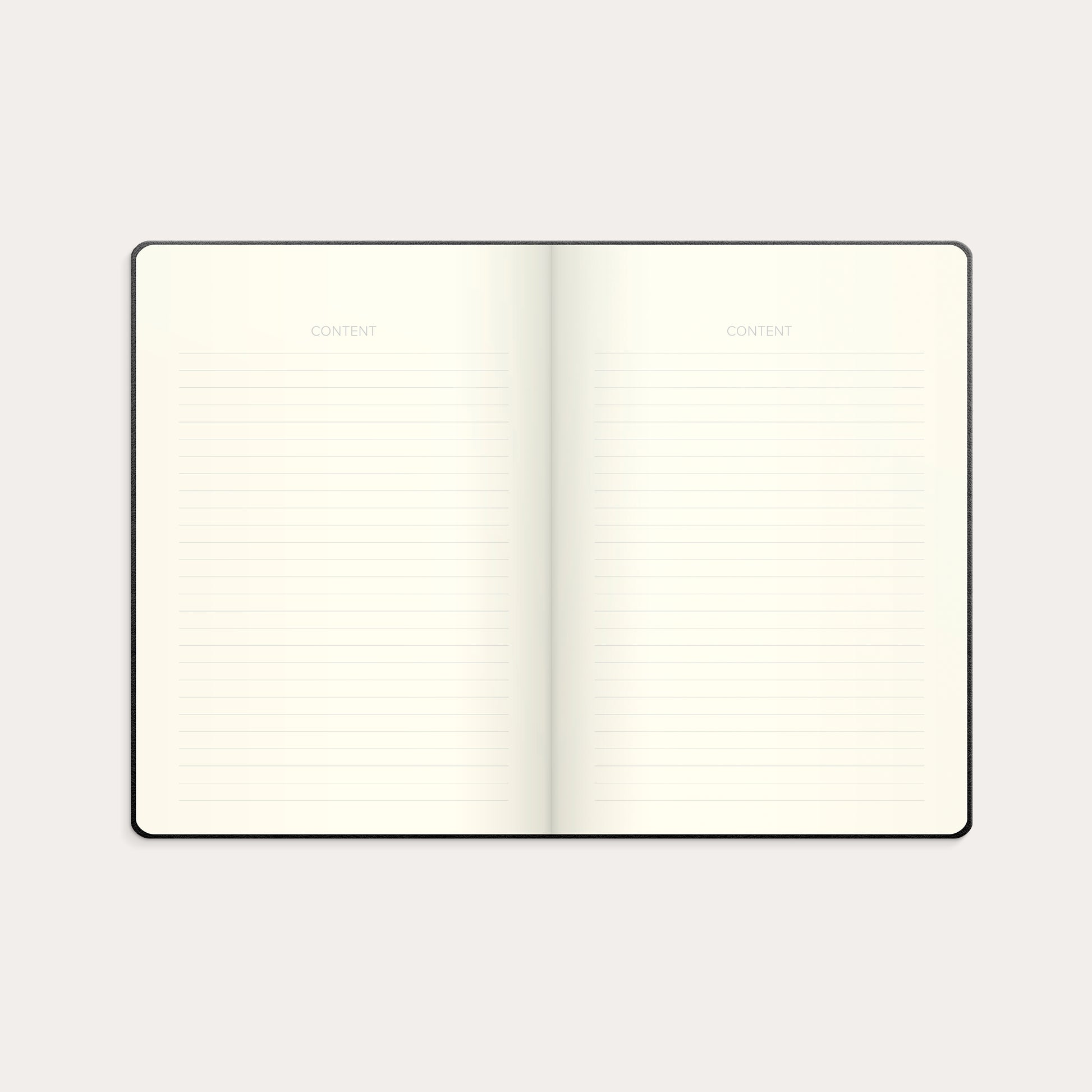 Our classic DotNotes with a black faux leather cover and matching elastic band. Perfect for anyone starting out with Bullet Journaling. Collect your ideas, to-do lists and notes all in one place. Contains 186 numbered, dotted cream-coloured pages made from 100 gsm acid-free and bleed-proof paper. Begins with “Content” pages for creating your own index. Also includes a cream-coloured paper pocket at the back and a black ribbon marker.