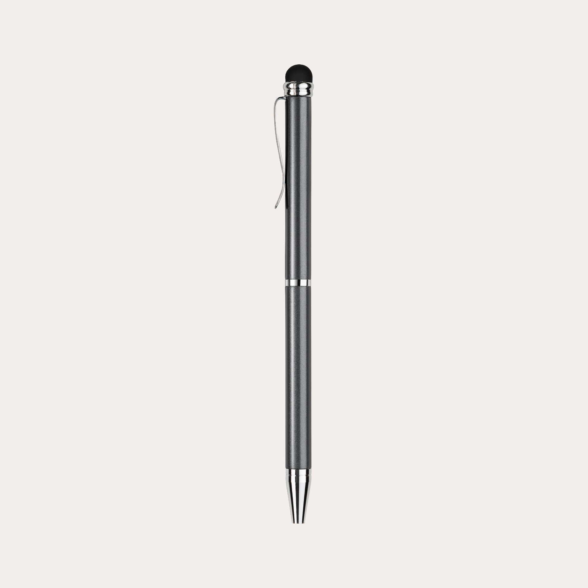 En klassisk kulspetspenna med en praktisk touchtopp längst upp, vilket gör det enkelt att använda din smartphone eller surfplatta utan att lämna fingeravtryck på skärmen. Pennan är 110 mm lång och har blått bläck.
