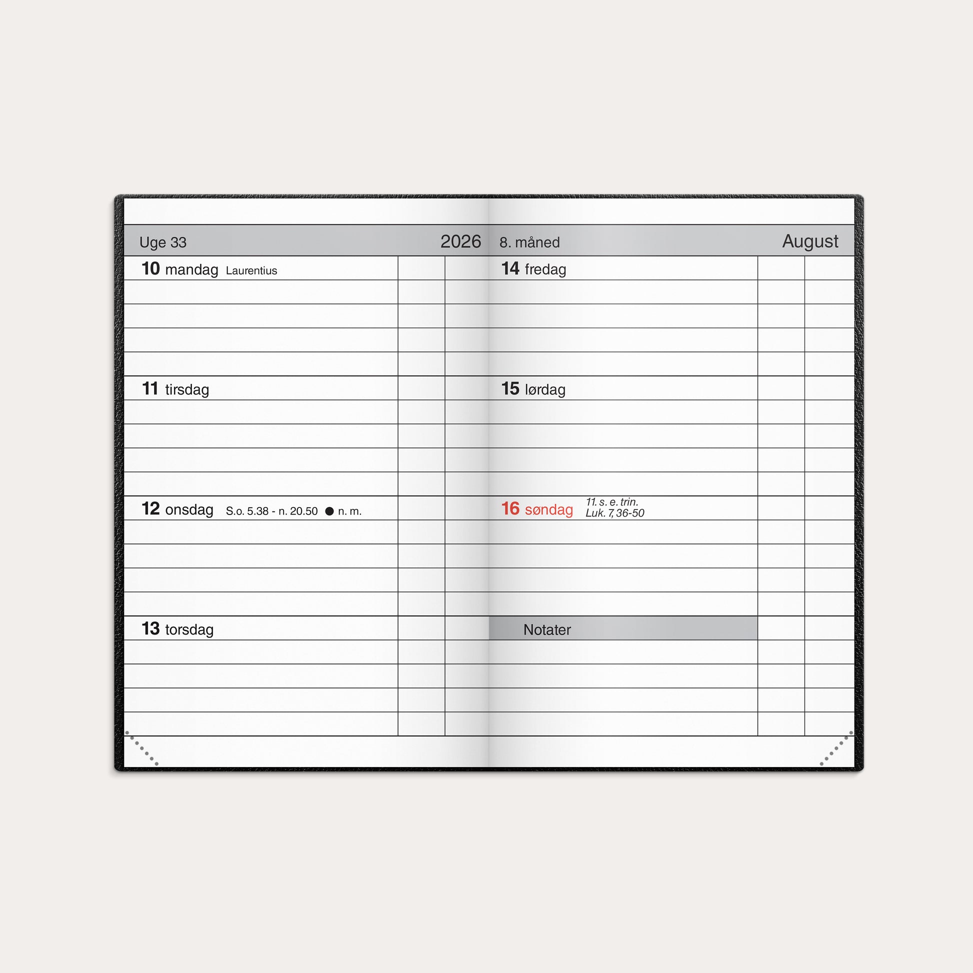 Lommekalender uge sort kunstskind indbundet 2026