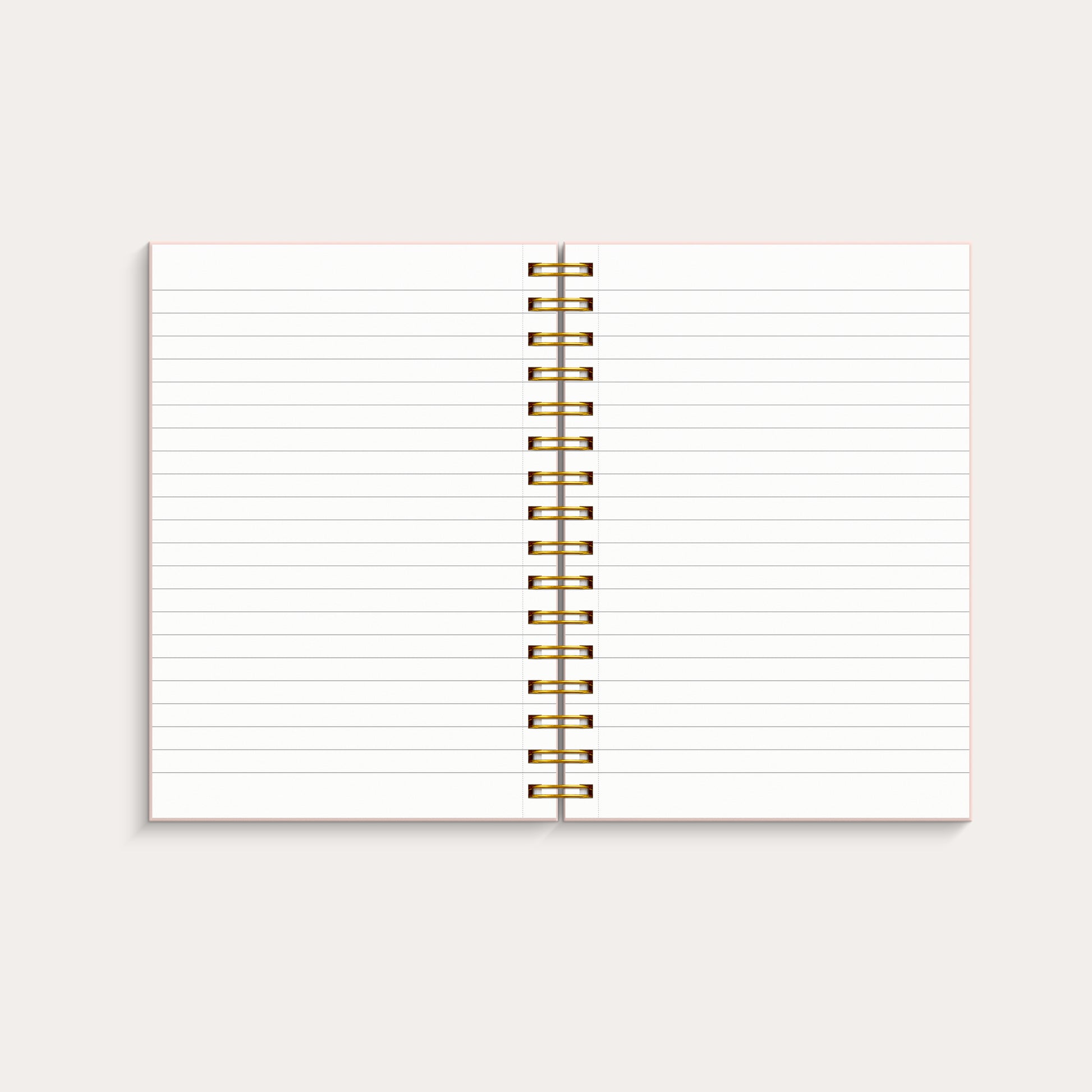 A notebook with a matte cardboard cover in pink and an elegant gold-coloured spiral – perfect for those who want to combine simplicity with a touch of luxury. Contains 300 lined pages – ideal for notes, lists, meetings or creative ideas.