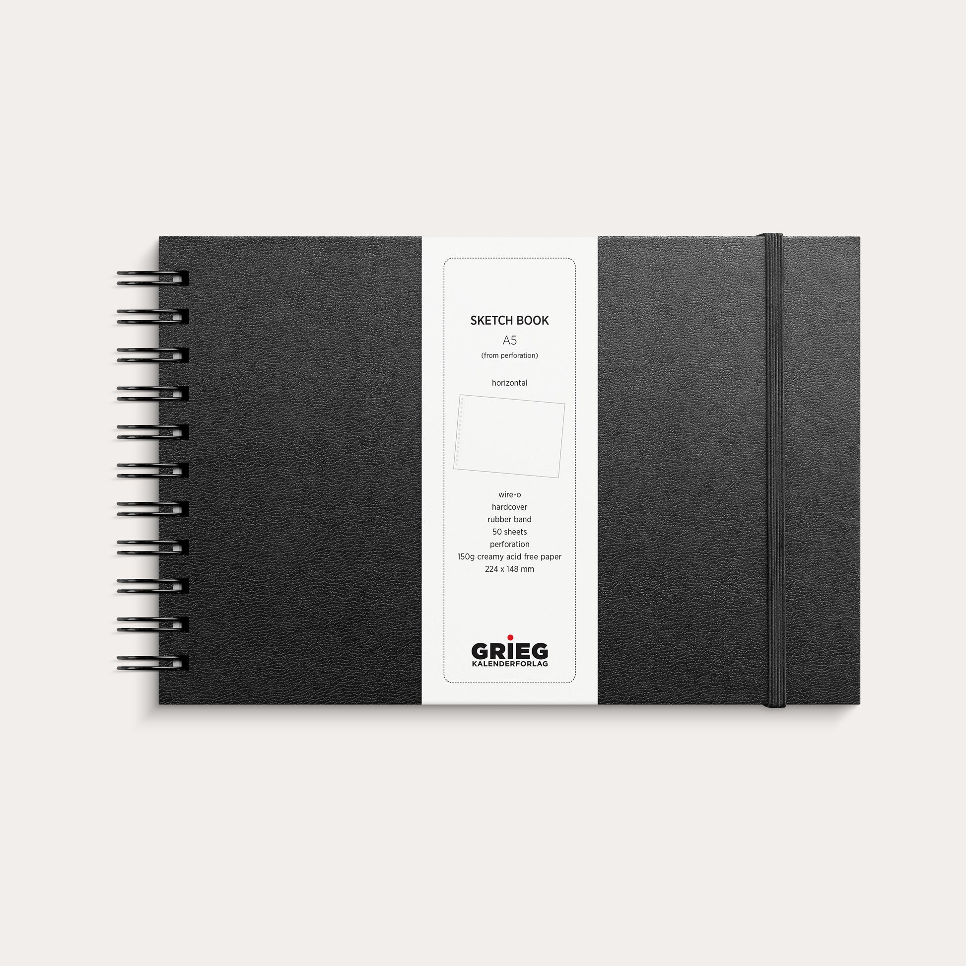 Sketch pad with a structured cardboard cover and a practical elastic band to keep your pages in place. Contains 50 cream-coloured, acid-free unlined sheets – offering a smooth surface for sketches and creative projects. Paper size after perforation: A5L.