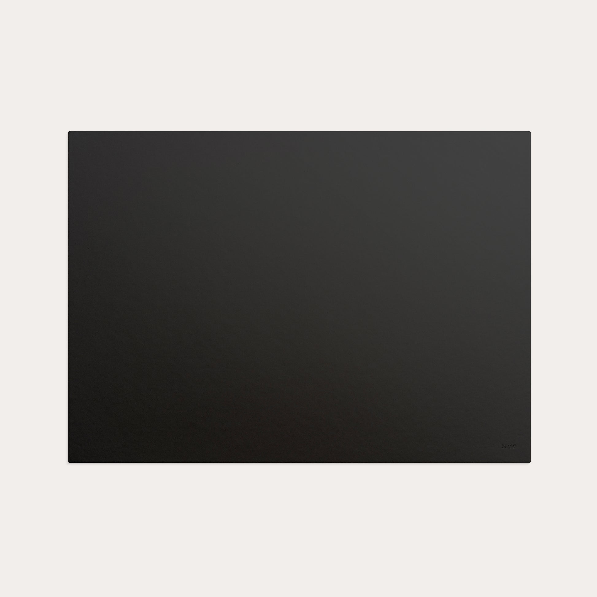 Black artificial leather with anti-slip backing to keep the pad in place. Discreet embossing in the right corner. Size: 600x430 mm.