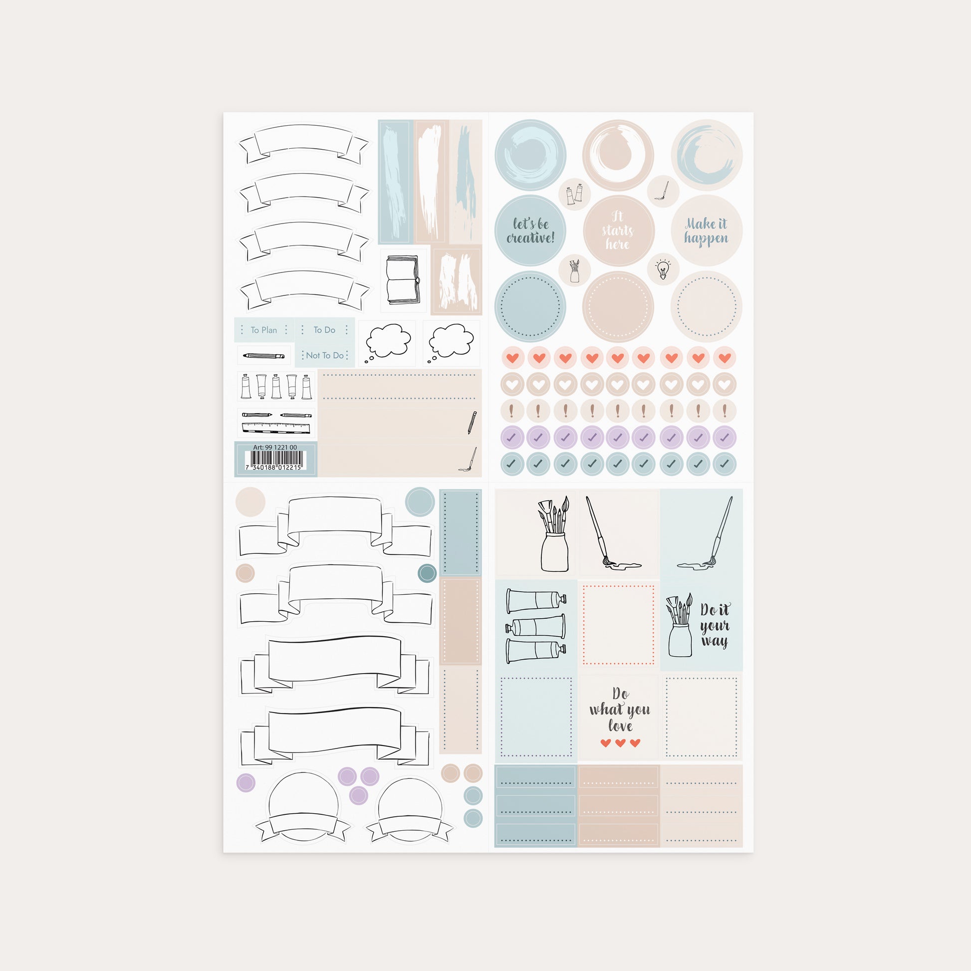 Et klistermærkeark til alle dine kreative projekter! Arket er fyldt med lidt større klistermærker med plads til at sætte dit eget præg.