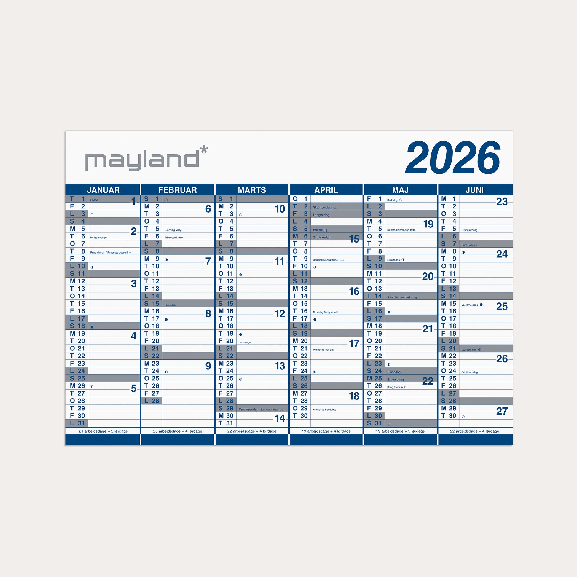 Vendbar kæmpekalender 70x100 cm i miljøvenlig plast med 2x6 månedsoversigt. Vægkalenderen giver dig en oversigt med 6 måneder ad gangen, så du hurtigt og nemt kan skabe et godt og overskueligt overblik over året og alle dets aktiviteter. Du kan skrive på plastkalenderen med en vandbaseret non-permanent marker, som nemt kan fjernes igen med en fugtig klud. Brug f.eks. en Staedtler Lumocolor 315.