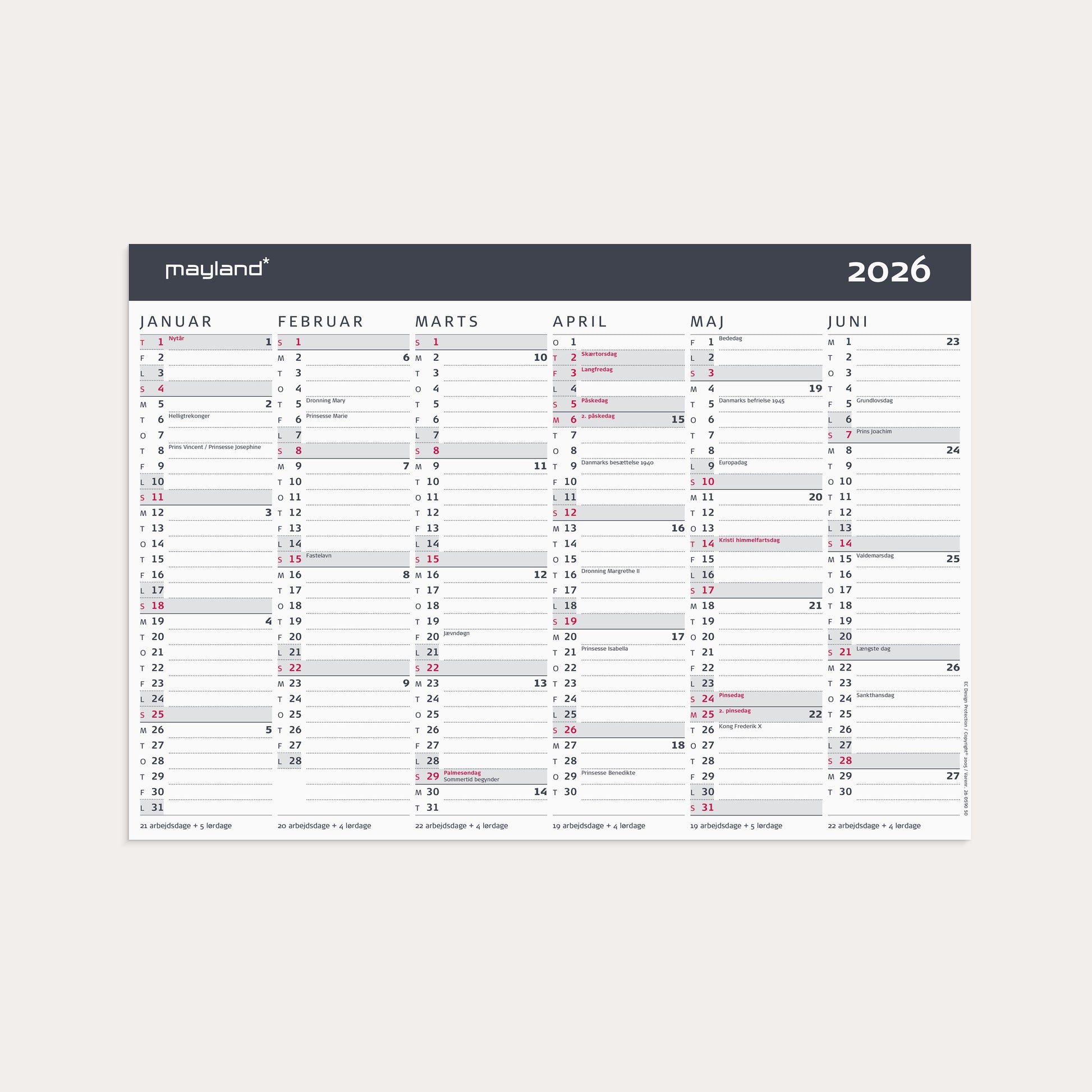 Vendbar kontorkalender i karton og moderne design med 2x6 månedsoversigt. Vægkalenderen giver dig en oversigt med 6 måneder ad gangen, så du hurtigt og nemt kan skabe et godt og overskueligt overblik over året og alle dets aktiviteter.