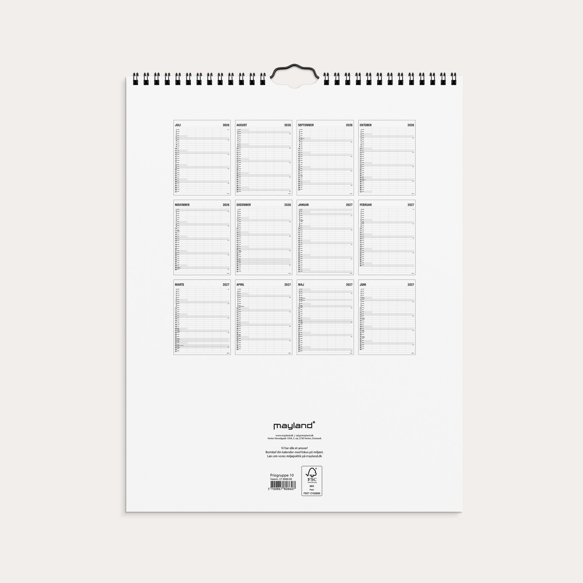 Studie Familiekalender Black and White 5 kol. 2026/2027