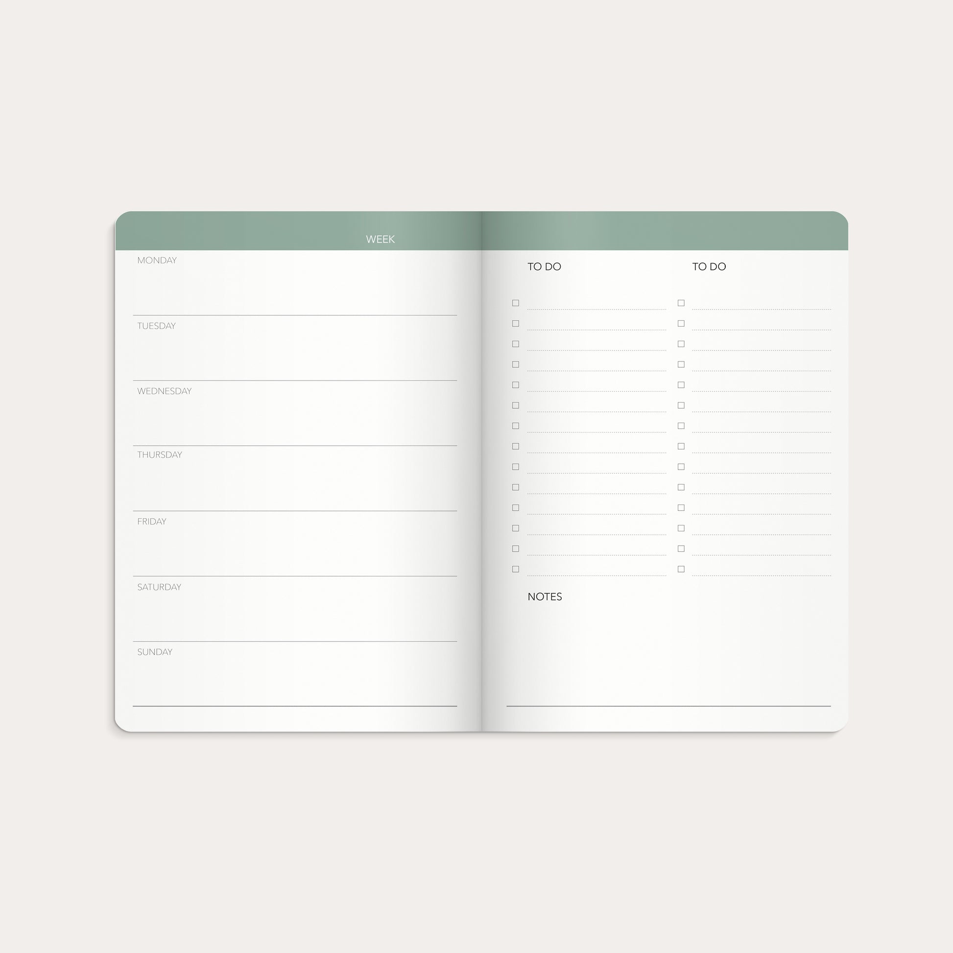 Mayland. Udateret ugekalender i et moderne og minimalistisk design. Kalenderen er oplagt til dig, der gerne vil planlægge og strukturere din hverdag. Med to do-lister for hver uge, måned og den kommende måned, plads til daglige noter og prikkede sider til egne kreationer har du alt, du skal bruge for at få et overblik og hverdagens gøremål og planer. Kalenderen er indbundet i et blødt kartonomslag med sølvpræg og hvidt mærkebånd. Kalenderen er inddelt med en uge i tværformat på den ene side og plads til to do-lister og noter på den anden side. Desuden er der en papirlomme bagerst i kalenderen med plads til løse papirer. 128 sider med 90 g hvidt papir. Format: 148x210 mm.
