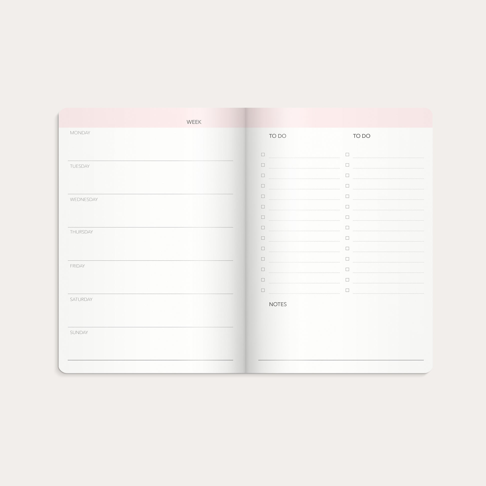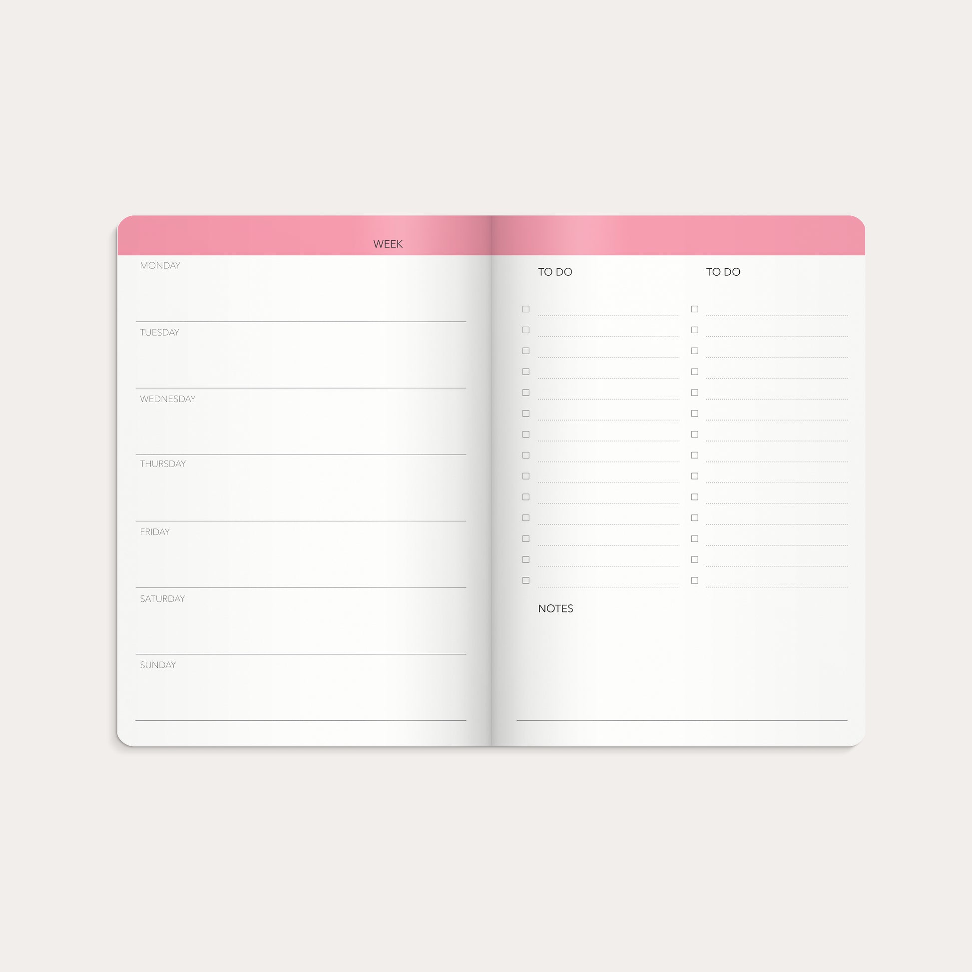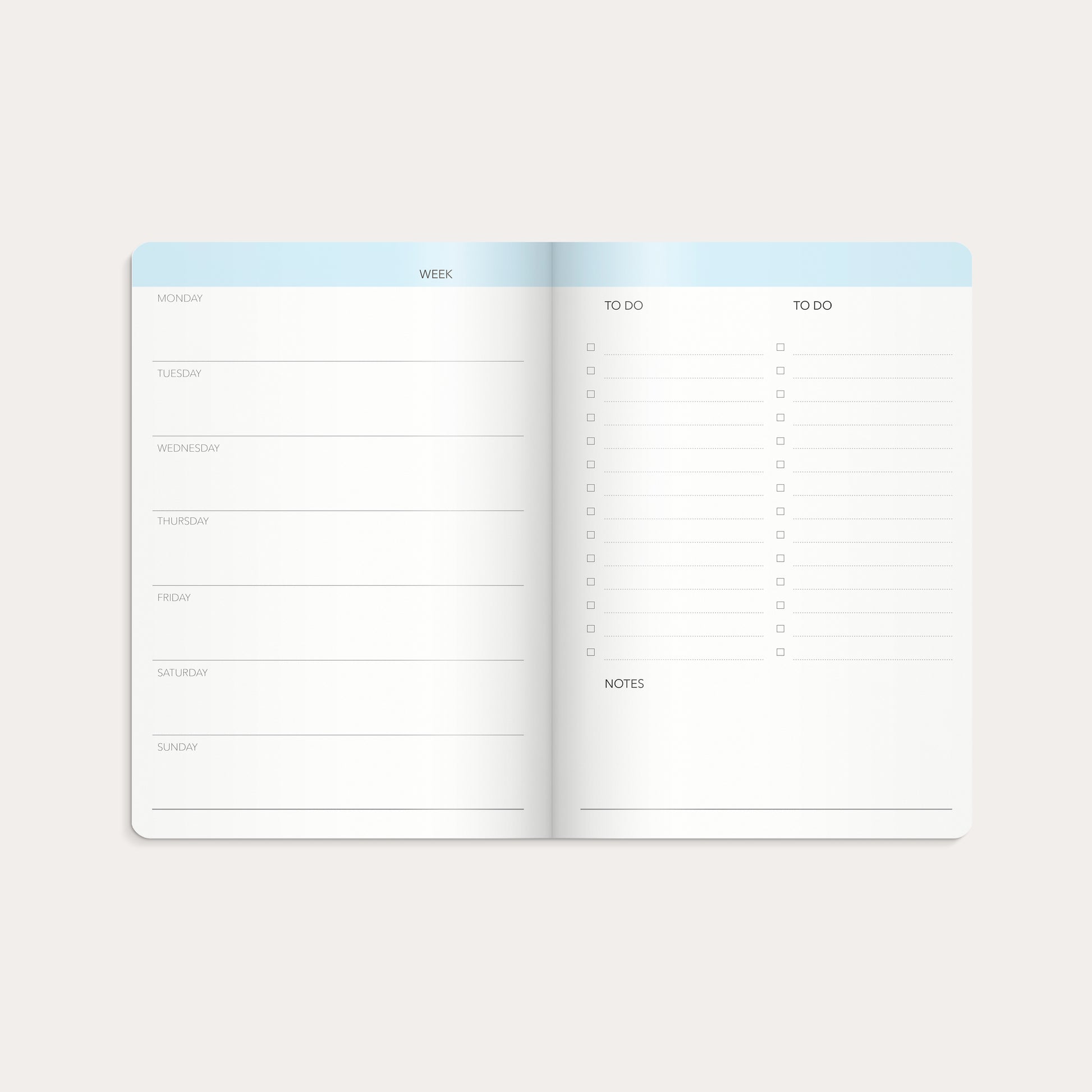 Mayland. Udateret ugekalender i et moderne og minimalistisk design. Kalenderen er oplagt til dig, der gerne vil planlægge og strukturere din hverdag. Med to do-lister for hver uge, måned og den kommende måned, plads til daglige noter og prikkede sider til egne kreationer har du alt, du skal bruge for at få et overblik og hverdagens gøremål og planer. Kalenderen er indbundet i et blødt kartonomslag med sølvpræg og hvidt mærkebånd. Kalenderen er inddelt med en uge i tværformat på den ene side og plads til to do-lister og noter på den anden side. Desuden er der en papirlomme bagerst i kalenderen med plads til løse papirer.
